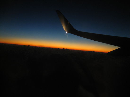 Das Buch von Bill Bryson "Frühstück mit Kangoroo" erzeugt weitere Lachanfälle bei mir, bis Thomas mich nur noch mitleidig anguckt.... Das Abendessen lassen wir weitgehend unangetastet. Qantas versorgt uns netterweise noch mit einem Servicekid (Socken, Zahnbürste, Augenbinde, Snacks und Wasser). Wir sind müde. Trotzdem nehme ich sicherheitshalber meine Schlaftablette, die auch direkt wirkt. Zwischendurch werden wir mal ganz schön durchgeschüttelt, aber es ist auszuhalten. Zum Frühstück bin ich wieder richtig wach.