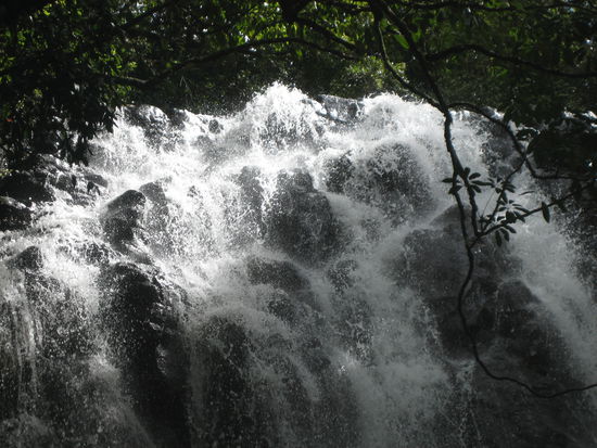 Kurz vor Millaa Millaa zweigt der Weg zum 15 km langen Wasserfall-Circuit ab. Dem folgen wir und erreichen auf der einspurigen Straße, die aber Gott sei Dank sehr wenig befahren ist, bald den ersten Wasserfall, den Ellinjaa Fall. Wir stellen den Camper auf dem Parkplatz ab, folgen dem Wanderweg und klettern zahlreiche Stufen hinunter. Schon weit vorher hören wir den Wasserfall. Der ist sehr schön und idyllisch.