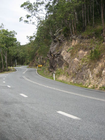 Danach geht's weiter. Wir verlassen den Circuit und fahren auf der 25 weiter durch das Tableland. Wir durchfahren nur sehr kleine Ortschaften. Auf dem Weg Richtung Osten tröpfelt es wieder ab und zu, dann kommt aber doch wieder die Sonne. Plötzlich fängt die Straße an sich zu winden. In steilen Serpentinen geht es kilometerweit. Thomas muss ganz schön kurbeln und schalten, um da hoch und anschließend wieder runter zu kommen. Zwischendurch machen wir an einem Aussichtspunkt halt und essen ein Sandwich.
