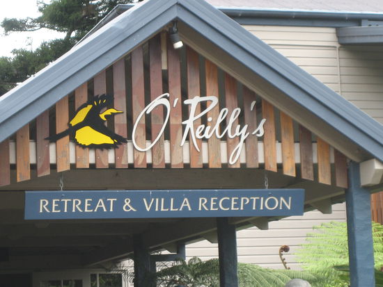 In Canungra machen wir erst mal eine Pause, besuchen die öffentliche Toilette und das Visitor Center, wo Thomas mit einem lahmarschigen Internetzugang nochmal die E-Mails checkt. Die nette Dame dort frage ich, ob es schwierig ist, mit einem Camper unserer Größe nach O'Reilleys zu fahren und dort einen Campingplatz zu finden. Sie verneint und schaut im Computer nach, ob noch ein Stellplatz frei ist. Ist er, eine Reservierung nicht notwendig, daher fahren wir nach einem Stop im ortseigenen Cafe los. Ich bin ja schon innerlich darauf vorbereitet, aber das was uns jetzt erwartet, übertrifft unser beider Vorstellungskraft doch. Die Straße geht steil und sehr (!) eng in engen Kurven in die Berge hoch.