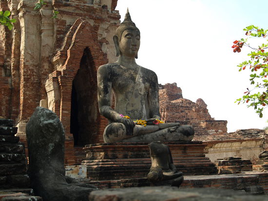 Ayuthaya war eine Millionenstadt bevor es Bangkok gab. Die damalige königliche Familie rettete sich vor einem burmesischen Angriff nach Thonburi, dem "alten" Bangkok. Leider wurde der Großteil der Tempelanlagen und Schätze damals zerstört. Viele Buddhastatuen konnten allerdings gerettet werden und finden sich heute in anderen Tempelanlagen des Landes wie wir aus interessanten Gesprächen mit Mönchen erfahren haben.