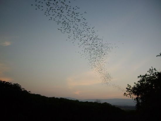 Das Highlight des ersten Abends war der Flug der Fledermaeuse bei Sonnenuntergang. Waaaaaahnsinn - bestimmt ne halbe Stunde.