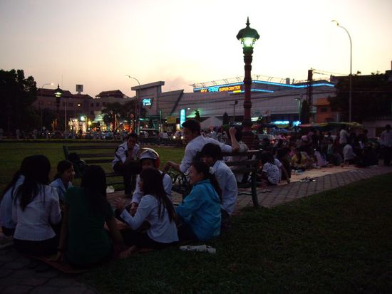 Eigentlich dachte ich, es gibt nix zu berichten. Aber irgendwie war Phnom Penh doch wieder gut. Ich bin angekommen, als Chinese New Year war, also gab's Wasserspiele und der Park war voller Leute. War echt cool. Allerdings ist es auch echt ein Refresh: Man wusste ploetzlich wieder, wofuer man immer Bonbons und 100 Riel-Scheine in der Tasche hatte... Gerade an dem Tag wurde besonders viel gebettelt.