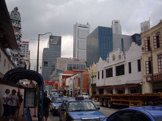 Aber ich muss sagen, Singapur gefaellt mir recht gut. Wir sind in Little India - eine nette Gegend. Sind ja auch nur 3 Tage Aufenthalt hier, also schlendert man ein bisschen durch die Stadt und schaut sich alles an. Ich kam mir wieder vor wie beim Tauchen, da ich staendig mit offenem Mund nach oben schauend hinter Keith hergedackelt bin