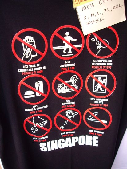 ALLERDINGS: Diese Gesetze hier - ich dreh durch! Ich koennte hier niiiiieeeee leben!!! Kein Kaugummi kauen, ueberall Schilder "No smoking by law", hier geht echt gar nix! Und das komische ist, nirgends Bullen. Also wie funktioniert das Auffliegen hier? Wie bei uns zu Stasi-Zeiten????