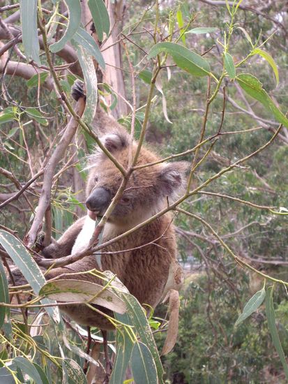 Dort gibt's auch die wenigen von den 600 Sorten Eukalyptusbaeume, die auch die schnoeggeligen (fuer die Hamburger: krueschen) Koalas moegen. Also hat's dort gaaanz viele suesse Koalas.