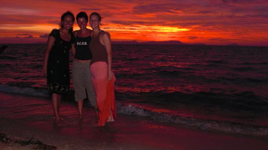Natuerlich gab's auch wieder sagenhafte Sonnenuntergaenge und eine Inselumrundung. Die war echt toll, so viele verschiedene Vegetationen - weisser Strand, schwarzer Strand, Dschungel, Grasflaechen, Felsen...
