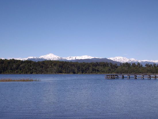 Mit halb aufgeladenen Batterien hab ich mich dann auf den Weg an die Westkueste gemacht. Hab mir auch die schoene Zugfahrt durch die Southern Alps geleistet. Allerdings waren die Kuppen nicht mit Schnee bedeckt, was bestimmt noch ne Menge ausgemacht haette. Trotzdem war es eine sehr schoene Fahrt. Es gibt einen Aussichts-Waggon ohne Fenster, wo ich mich natuerlich die meiste Zeit aufgehalten habe.