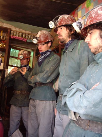 In Potosi macht man dann die typische Minentour. Eine krasse Sache! Die Minenarbeiter haben echt kein leichtes Leben. Wenn man sieht, wie die durchgeschwitzt ihre Wagen rauskarren auf Schienen, die man echt nicht Schienen nennen kann (eher zerfaserte Holzplanken), kann man schon in eine tiefe Trauer verfallen. Es heisst mit dem Silber, dass aus der Mine geholt wurde, kann man eine Brücke bis Europa bauen, mit den toten Leuten zwei (8 Millionen sind dort schon gestorben).