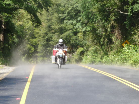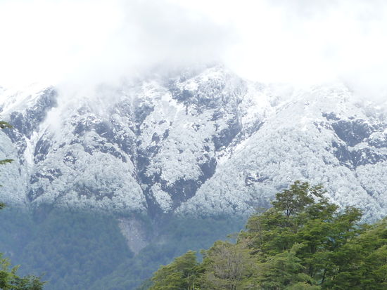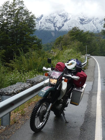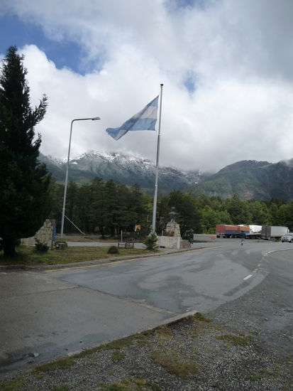 Es war zum dritten Mal sehr windig in Bariloche aber beim Abfahren noch sonnig. Wir wussten aber dass es unterwegs regnen wird. Genau nach 65 Km war es soweit. Hatten uns wärmer angezogen aber doch zu wenig. Ich frierte am Oberkörper trotzdem das ich den Regenkombi übergezogen hatte. Einige Schluck Piscoreste hat es dann etwas augeglichen. Schlimm war es durch den Regen, da das Visier sich innen anfeuchtete und ich wenig sehen konnte. Deshalb haben wir in La Angostura nach 20 km Regen halt gemacht. Dort standen 3 weitere BMW aus Rio Cuarto in Cordoba, also meine Provinz. Habe einige Minuten mich mit denen unterhalten und sie werden mich besuchen wenn sie in Carlos Paz sind. Nach 60 Km bis zur Grenze sind wir erst am argentinischen Zoll vorbei, relativ schnell und einfach. Dann über den Pass an der Grenze begann es erst zu regnen und dann auch noch leicht zu schneien, es wurde zunehmend kälter.40 Km später war dann der chilenische Zoll der etwas aufwendiger war. Als Biker dürfen wir uns gleich vorne anstellen, wenn es regnet oder auch so glaube ich. Beim runterfahren ins Tal wurde es immer sonniger obwohl Platzregen und bewölkt angesagt war. Sind dann noch rein nach Osorno aber ich kann dieser Stadt nichts abgewinnen, so was ich gesehen habe. Es soll sehr viele deutschstämmige hier geben, was sich an viele Straßennamen bemerkbar macht. Und Kuchen heißt hier so auch auf chilenisch. Wir sind nicht eine Minute geblieben um schnell auf die Ruta 5 zu kommen. Schön das Benedikt ein GPS besitzt und das erleichtert schon einiges, wenn man sich nicht auskennt.