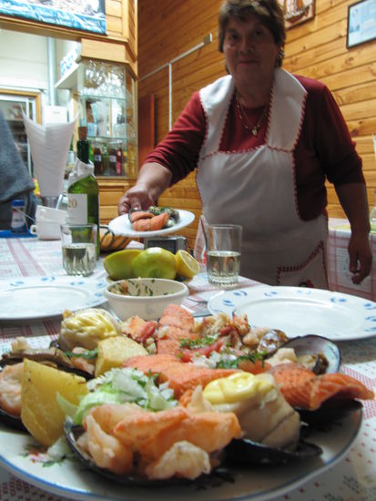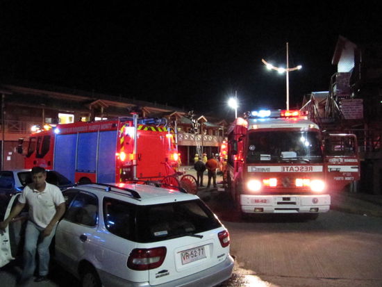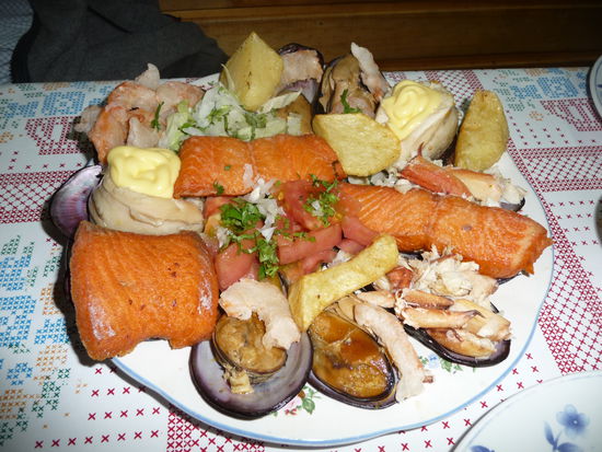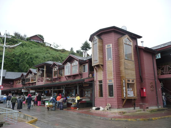 In Puerto Montt angekommen suchten wir per Guide und GPS den Hostal Suizo und bekamen auch dann ein passendes Zimmer. Alles schnell abgelegt und gleich zum Fischmarkt hin wo viele kleine Esslokale zu finden sind. Gleich hat uns eine Tante angequatscht und wir sind dann auch prompt zu ihr hin. Zum Essen gab es reichlich Lachs mit Meeresfrüchte Pisco und Weißwein. Hatten schon fertig gegessen und dann plötzlich die helle Aufregung in der Umgebung. Es gab gegenüber ein Kurzschluss und es rauchte heftig vom Dach. Unsere Motorräder hatten wir unten geparkt. Benedikt half in der Küche Wassereimer zu füllen und ich brachte sie an Ort und Stelle. Plötzlich hat es geheißen alles unter Kontrolle, aber nach 15 Minuten rauchte es wieder. Da kam aber schon die Feuerwehr und drohte unsere wegfahrt zu blockieren. Gerade in letzter Minute konnten wir verschwinden. Zur Lage sei gesagt dass alle Häuser bzw. Bauten aus Holz sind und ein Brand mehr als ernst zu nehmen ist.