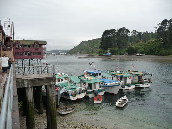 Die Weiterfahrt nach Chiloe war total unter Regen.Unsere Klamotten waren total naß und sind noch am nächsten morgen nicht trocken. Von Chiloe haben wir auch nicht viel gesehen.Heute Abend soll unsere Fähre nach Chaiten gehen. Das müßen wir noch abklären ob sie fährt das es eine Sturmwarnung gestern gab und es heute nicht so sicher ist ob wir auslaufen.Wir buchten eine Kabine und sollen morgen um 8 Uhr ankommen.
