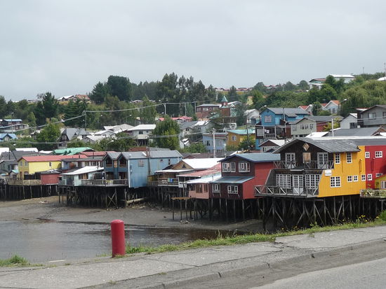 Nach dem Aufwachen war das große Regen und es sollte so bis Castro in Chiloe bleiben. Wir hatten bereits in Puerto Montt erfahren das unsere Fähre wegen Sturmwarnung einen Tag später fahren wird. So entschieden wir nach Castro zu fahren und dort eine Bleibe zu suchen. Es regnete ständig auch mussten wir eine kleine Fähre nach Chiloe nehmen. Von den 2 größten Inseln in Chile, haben wir leider nicht viel gehabt. Durch den Regen haben wir den lokalen Nationalpark auch nicht besucht, da wir eher an einer Pause interessiert waren. Im Hostal Central angekommen, haben wir unsere gesamte Wäsche hingehängt da alles durchnäßt. Auch am nächsten Tag war alles noch Nass, so kam die Nachricht der Verspätung nicht ungelegen. Das Wetter soll noch von heute Samstag bis Donnerstag so bleiben. Wir entdeckten auch Nachfrage ein sehr gutes Restaurant Namens Mary´s 30 Meter vom Hostal entfernt. Dort haben wir uns einiges schmecken lassen. Unter anderem Fischfilets, Ceviche aus Lachs, Seehecht und Lengfisch, Seeigelzungen, Paila Marina (Meeresfrüchtesuppe) und ein Curanto Eintopf. Letztes ein Eintopf aus geräuchertes Schweinefleisch mit verschiedene Muscheln, Kartoffeln und Bohnen. Frischer und billiger geht es nicht. Jedes Gericht um die 5000 Pesos, also unter 10 EUR, Portionen die kaum zu schaffen waren und Weine um die 4000 Pesos ca. 7 EUR. Alles sehr aber sehr lecker. Gestern hat es ausnahmsweise mal nicht oft geregnet.