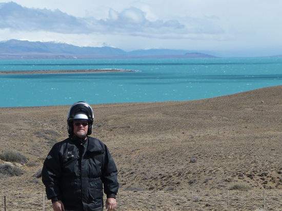 Bin dann 2-mal an Lago Viedma vorbei der einfach mehr als 100 Km lang ist. Im Hintergrund sah man den Viedma Gletscher, den man sonst nur über den See erreicht. Danach kommt der Lago Argentino mit einer Türkisen Farbe wie man selten und nur bei Gletscherwasser sieht. Dort traf ich im Aussichtspunkt wieder auf Andres der noch zum Perito Moreno wollte. Nach ca. 30 Km haben wir ihn wieder begegnet. Ein Seitenwind hatte ihn fast vor meiner Nase wieder ins Abseitz befördert. Ihm war wieder nichts passiert und die Maschine lag im Graben. Im nu waren um die 10 Biker da und halfen diese wieder auf die Straße. Hat alles funktioniert, so dass er weiter fahren konnte. Von seinem Vorhaben hat er nun doch abgesehen und übernachtet wieder im gleichen Hostal Che Lagarto. Hier gibt es heute Party mit Asado und brasilianische live Musik.