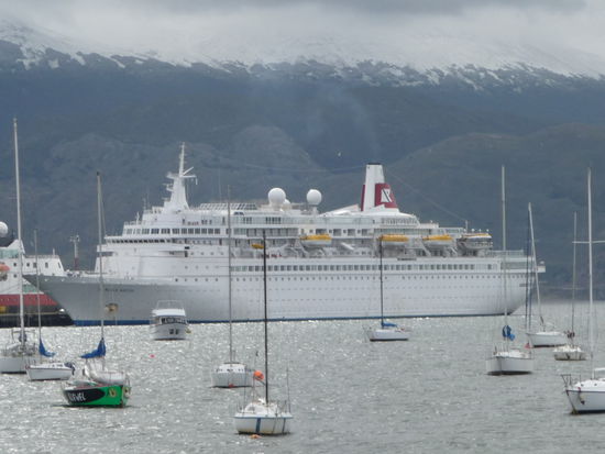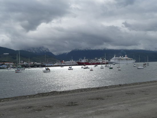 Ushuaiha liegt im 55 Längengrad Süd und 68 Breitengrad Ost. Nach meinem Besuch am Nordkap in Norwegen letztes Jahr, nun der südlichste Punkt der Erde denn ich mit dem Motorrad erreichen kann. Der Beagle Kanal erhielt diesen Namen von einem Segelboot, dessen Seefahrer Namen Fitz Roy war. Die Stadt Ushuaia ist umgeben von Berge die parallel zur Küste liegen. Unweit von hier gibt es einen Nationalpark, den ich aber mangels Zeit nicht mehr besuchen werde. An der Bucht liegen meist große Schiffe die hier vor der Reise in die Antarktis nochmals halt machen.