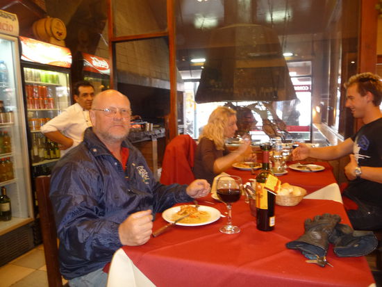 Als ich in Rio Gallegos ankam hatte ich wenig Luft im Hinterreifen, mal morgen sehen ob es Luft verloren hat. Heute übernachte ich mit Zimmer Nachbar in einem Kasino der Unteroffiziere der argentinischen Luftwaffe für 70 Pesos ca.12 EUR. Der im Empfang ist auch aus Cordoba, so dass ich gleich gute Karten hatte. Daneben ist ein Restaurant in dem man günstig Essen kann und hier sitze ich gerade.