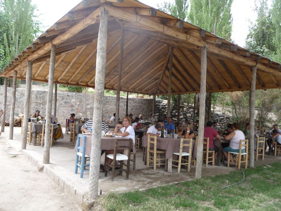 In Los Potrerillos war ich mit 15 Jahre zum letzten Mal, mit einer evangelischen Kirchenjugendgruppe. Das ist schon 50 Jahre her und da gab es diesen schönen Staudamm noch nicht. Habe dort in einem einfachen Lokal sehr gut gegessen. Empanada mendocina 2 Pesos Spannferkel vom Holzgrill 30 Pesos, Portion reicht für 2, ein Malbec aus Mendoza 15 Pesos und ein Doppelflan mit Milchkaramell zusammen 59 Pesos.