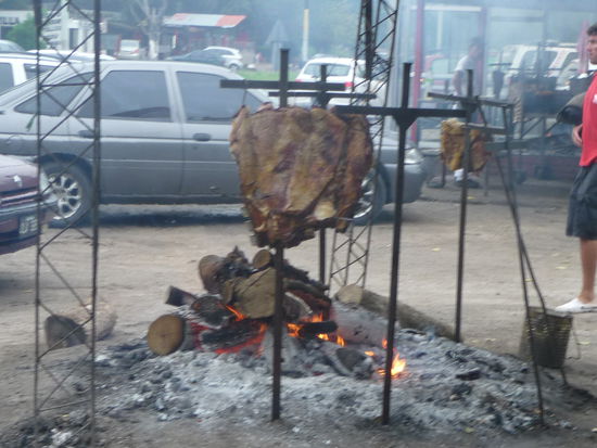 Bin zum Frühstücken und plötzlich fängt es an richtig zu regnen. Das war laut Wetterbericht nicht im Programm. Schaue nochmals im Internet und plötzlich soll es bis Donnerstag regnen, es war Montag. Nein das mach ich nicht mit. Habe mein Moped bepackt und bin dann losgefahren. Habe in Pinamar noch eine Jugendfreundin besucht und mit ihr eine Stunde geplaudert. Kurz nach meiner Abfahrt von Villa Gesell  hat es mit dem regnen aufgehört, es war nur bewölkt. Mitten des Weges machte ich wieder ein Grill Stopp Aber bald nach halber Strecke hat es wieder angefangen und erst nach 110 Km wieder aufgehört. Meine Stiefel waren wieder voll mit Wasser, die ich bei einem Tankstopp wieder entleerte.