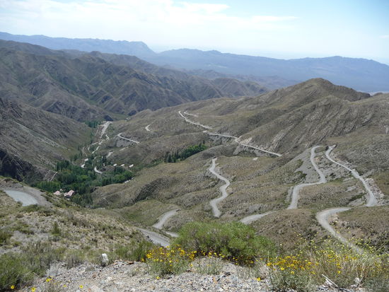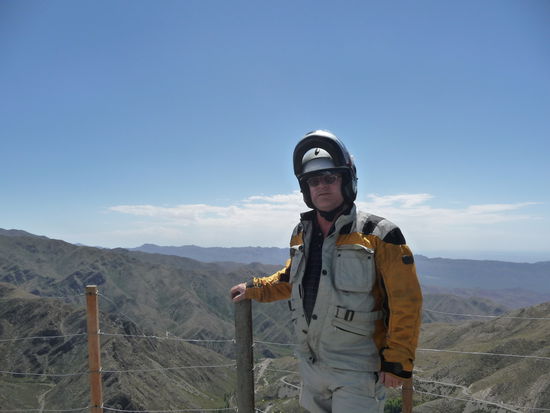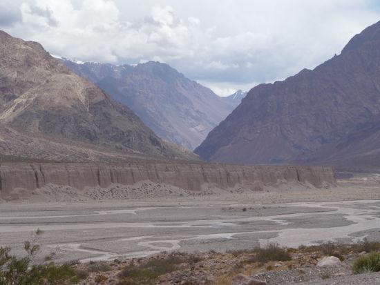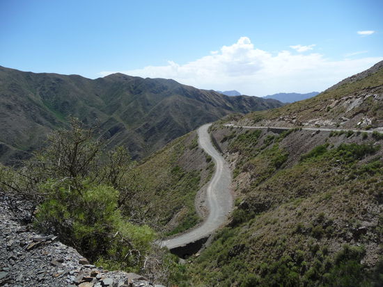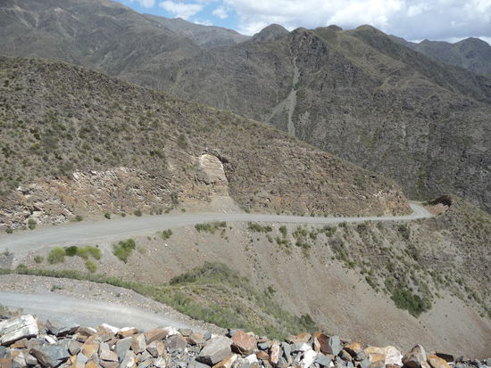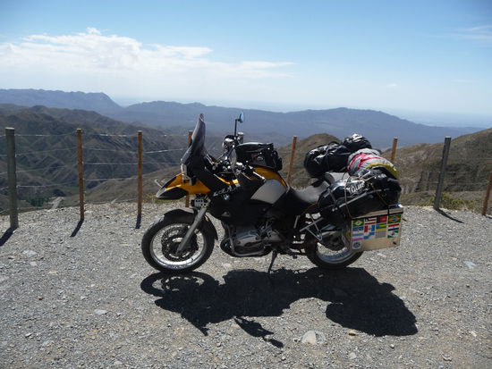 Morgens um 8 gefrühstückt und anschließend die Maschine wieder voll bepackt. Musste durch die ganze Stadt um die Straße nach Villavicencio zu erreichen. Das war die Empfehlung des per Zufall kennengelernten Gastronomen Besitzer einer 1200GS. Es ging ca. 1 Stunde ziemlich gerade aus und dann leicht bergig aber gepflastert. Sobald ich in Villavicencio war änderte es sich schlagartig in eine Schotterpiste, steil hoch auf fast 3000 Meter. Wie ich auf der anderen Seite des Berges war, gab es eine mächtigen Knall und es begann zu schütten. Langsam bildeten sich leichte Fluten auf der Straße und es dauerte noch ganze 30 Km bis ich den sonnigen Tal erreichte. Mit dem Fahrtwind wurde ich schnell wieder trocken. In Uspallata habe ich dann gegrilltes zu Mittag gegessen.