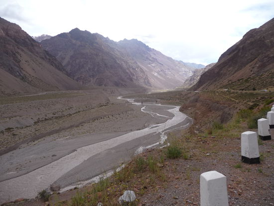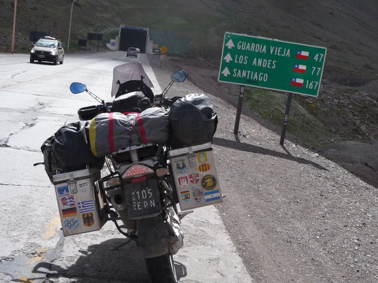 80 Km später kam dann die argentinisch chilenische Grenze mit ca. 50 Autos vor mir und ein Verwaltungskram ohne gleichen. Visa ,Zollerklärung und Agrareinfuhrerklärung, je 3 mal vorlegen Gelwechseln und Maut bezahlen. Es hat dann auch noch angefangen zu regnen. Kurzerhand habe ich alle Autos überholt und durfte mich gleich anstellen. Die Gepäckuntersuchung habe ich mir gespart da ich glaubhaft versicherte, das ich nichts zum Essen dabei hatte. Dann ging es endlich weiter allerdings nur 2 Km und da kam die erste von 3 Baustellen mit 20 Minuten warten, im Regen natürlich. Die restliche Fahrt nach Santiago war trocken und landschaftlich schön. Habe allerdings keine Bilder mehr gemacht. Werde hier ein bis 2 Tage bleiben und morgen als erstes eine Stadtrundfahrt machen.