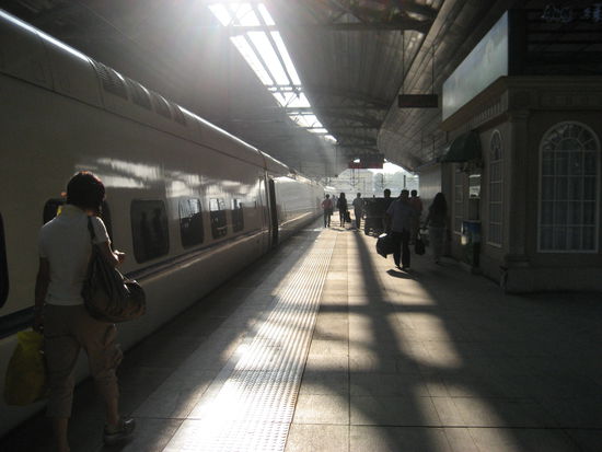 Am Samstagmorgen um 5.00 Uhr früh aufstehen, da unser Zug um 7.20 Uhr losfuhr. Man hatte uns nämlich gesagt, wir sollten möglichst schon einige Zeit vor der Abfahrt auf dem Bahnhof sein, da die Abfertigung ein bissle wie auf dem Flughafen erfolgt: Durchleuchten des Gepäcks, Anstehen und mehrmalige Ticketkontrolle... also waren wir um 6.10 Uhr auf dem Bahnhof, was dann doch etwas früh war.