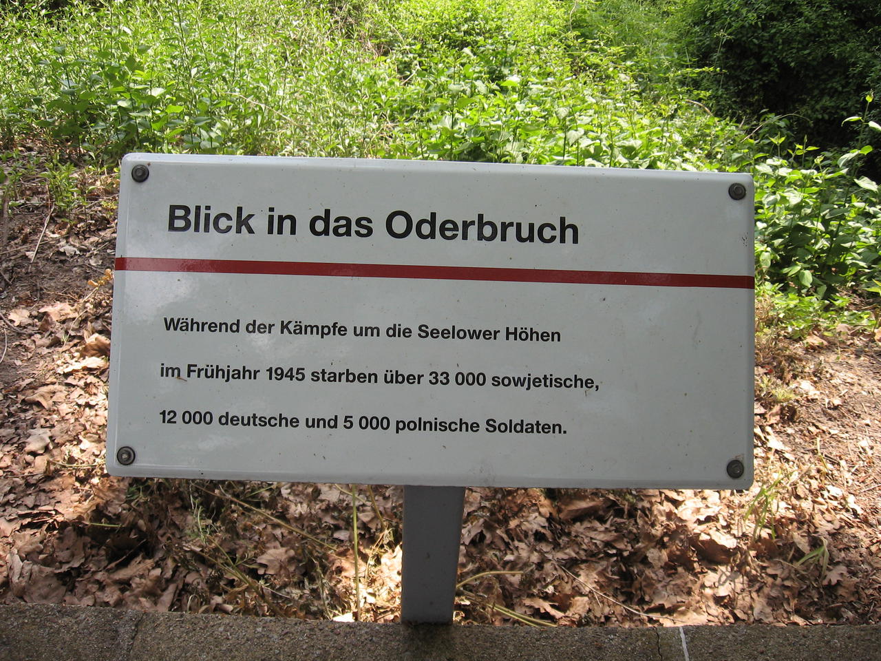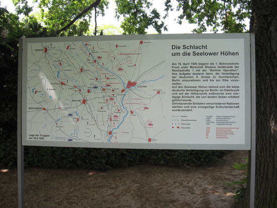 Doch gleich am ersten Tag erlebe ich viel neuere Geschichte, die unter die Haut geht, wenn man das Schlachtfeld sieht. In Seelow am Rand des Oderbruchs komme ich an einer Gedenkstätte für die Gefallenen beim Sturm der Roten Armee auf Berlin im April 1945 vorbei. Wer weiß von uns schon, dass allein hier über 50000 Soldaten, dabei weitaus mehr Russen gefallen sind als deutsche? Das Ehrenmal ist in erster Linie den Sowjetsoldaten gewidmet, in den erklärenden Landkarten wird das Schlachtfeld beschrieben, das man von einer Anhöhe aus überblicken kann. 1945 wurde hier so gut wie alles zerstört und dem Erdboden gleichgemacht.