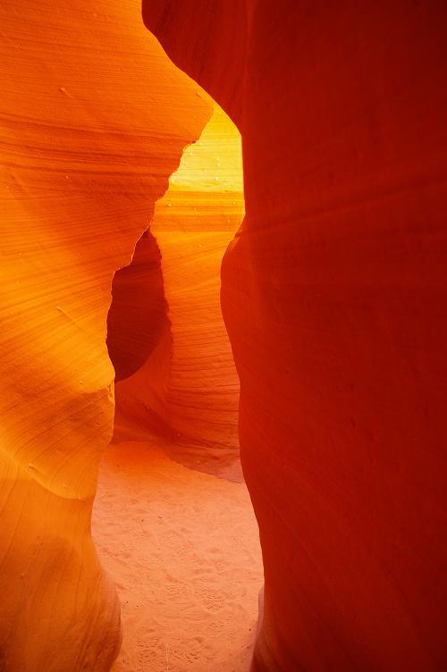 Äh ja, gestern haben wir uns dann nach noch einigen kurzen Stops vom Grand Canyon (Desert View am Ostausgang) verabschiedet und sind seitdem im Navajo-Land unterwegs. Wir befinden uns weiterhin auf dem großen Plateau und die Vielfalt der Landschaft ist trotz der scheinbaren Eintönigkeit sehr beeindruckend. Viele sehr farbige und schroffe Felsformationen und weite Ebenen, dazwischen immer wieder die tiefe Ritze, die der Colorado River hier in dieses Felsplateau geschnitten hat. Anja war noch an den Navajo-Handmade Arts Ständen shoppen, dann ging es auf der #89 gen Norden, wie gesagt durch landschaftlich sehr beeindruckende Gegend hierher nach Page. Die Stadt ist nicht groß älter als 50 Jahre und hat ihre Entstehung und Popularität dem Bau des Glen Canyon Damms zu verdanken. Dieser steht dem Hoover Damm eigentlich in nichts nach, hier wird der Colorado ebenso angestaut. Das Resultat ist ein dadurch entstandener 150km langer See, der sich zum Mekka der Bootsbesitzer entwickelt hat. Die Uferlinie des Lake Powell ist über 3000km lang. Aber nebenbei gibt es viele andere Sachen hier zu entdecken. So haben wir einen der bisher wenigen Mehr-Nacht-Stopps eingelegt. Waren dann heute kurz vor Mittag - wie im Reiseführer empfohlen - im Lower Antelope Canyon, eine nicht billige, aber echt lohnende Angelegenheit. Auf Navajo-Land gelegen, geht es aus einem unscheinbaren Flüsschen-Bett plötzlich in einer 40cm breiten Spalte Meter für Meter immer tiefer in den roten Navajo-Sandstein hinab. Das reflektierte Sonnenlicht zur Mittagszeit gibt dabei so fantastische Eindrücke und Bilder wieder, dass man diese schwer beschreiben kann. Anja meinte nur, das dies mit das Beste ist, was sie bisher fotografiert hat...seht selbst!