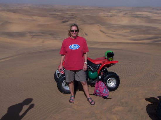 Ja, ok, es fiel ein bisschen schwer, heute morgen aufzustehen...Aber ich hatte eine der activities gebucht, die rund um Swakop möglich sind. Ich wollte Quad-biken. Die Alternativen wären sandboarding oder eine Bootstour gewesen, oder auch eine township-Tour. Nur das italienische Pärchen und ich hatten uns für´s Quad-biken entschieden. Alle anderen waren stinke-faul und wollten den Vormittag verpennen oder Swakopmund weiter kennenlernen !