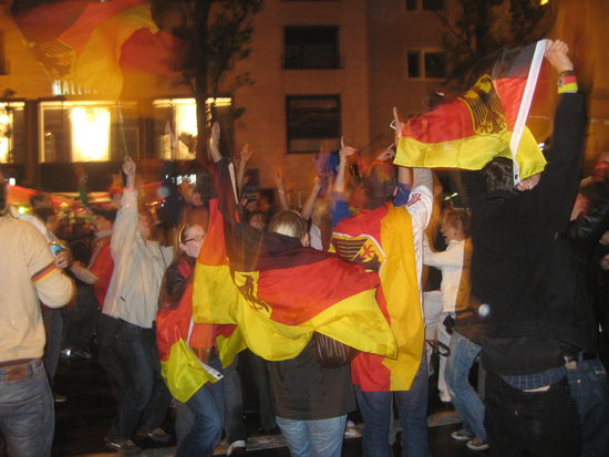 Die Fußball-EM 2008 die in der Schweiz und Österreich ausgetragen wurde, wurde ausgiebig auf der Leopoldstraße in München gefeiert, besonders wenn Deutschland am Ball war und auch gewinnt.