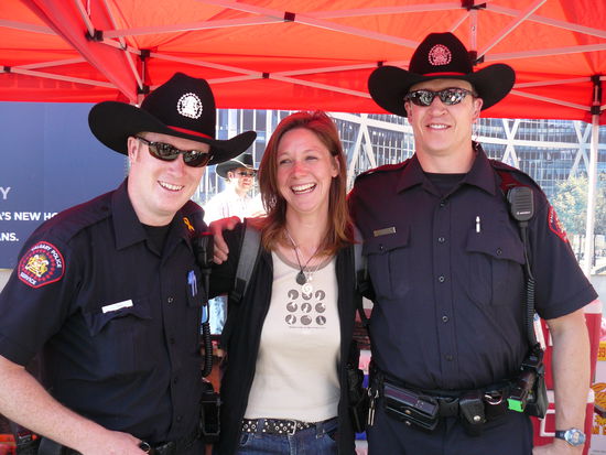 Da jeden Tag andere Veranstaltungen stattfanden, gingen wir an verschiedenen Tagen und besuchten die Highlights. Wir waren zu allen Scherzen aufgelegt und bis ich mich umsah, quatschte Bill fremde Leute an, ob er nicht ein Foto mit mir machen duerfe. Ich konnte gar nicht so schnell gucken und zack...... stand ich schon zwischen zwei Polizisten und das Foto war gemacht.....
