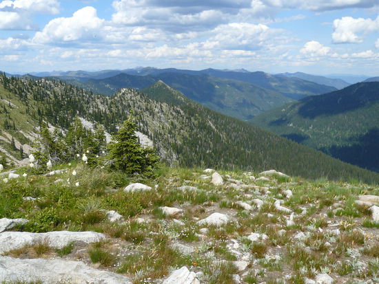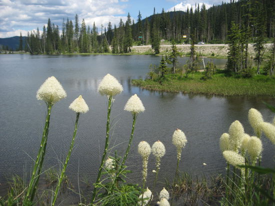 Eines morgens entschlossen wir uns eine kleine Wanderung auf den "Summit" zu wagen. Das sogenannte "Baergras" bluehte gerade in voller Pracht wie ihr unten im Bild sehen koennt. Die Wanderung war unheimlich schoen und wir hatten eine geniale Aussicht auf dem Gipfel. Unterwegs begegneten wir den flinken "Chip munks" die den Streifenhoernchen aehneln und in bestimmten Abschnitten lag sogar noch Schnee.