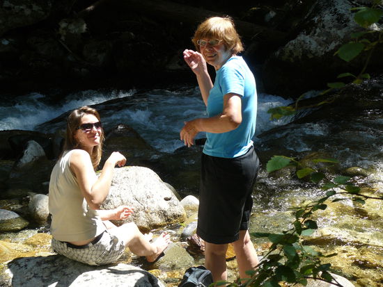 Den Wasserfall haben wir leider nicht gefunden, aber wir streckten unsre Fuesse eine Weile in den Fluss und machten uns dann auf den Rueckweg. Mit einigen Mueckenstichen mehr am Koerper und der Erfahrung wie es sich anfuehlt vor einem Baeren auf der Hut sein zu muessen, kamen wir schliesslich wieder am Auto an.