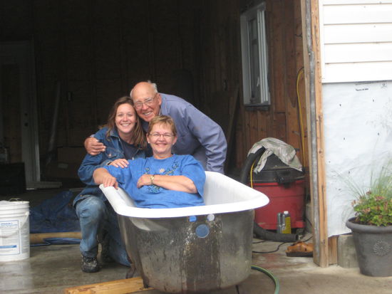 Bill aus Calgary kam fuer ein paar Tage und half auf der Farm mit. Er weiss sehr viel ueber Pflanzen und hat selbst einen grossen Garten in Calgary. Zusammen legten wir ein grosses, neues Blumenbeet an, planzten Blumen um, schafften Kuhmist und Erde herbei, waesserten und duengten. Bev und Barry waren begeistert. Eine alte antike Badawanne, die schon mindestens 15 Jahre im Wald lag, schafften wir heraus und renovierten. Es gab immer neue Herausforderungen und ich haette es gut und gerne noch etwas laenger ausgehalten.