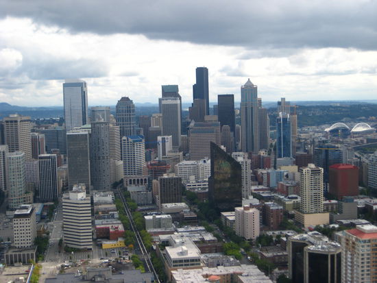 Eine Nacht hatten wir in Seattle verbracht, da Bonnie dort einen Arztermin am fruehen morgen hatte. So packten wir die Gelegenheit beim Schopfe und hingen gleich noch eine kleine Stadtrundfahrt dran. Von Seattle's Tower der sogenannten "Needle", weil sie wie eine Nadel aussieht, hatte mein einen wunderbaren Rundumblick auf die Stadt.