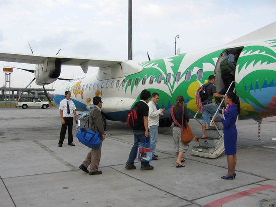 Nach gerade einmal 12 Stunden Aufenthalt in Thailand besteigen wir eine kleine Propellermaschine und machen uns mit 9 weiteren Passagieren auf den Weg von Bangkok nach Pakse (Laos).