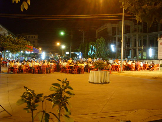 Wenn man in Laos eine Hochzeit feiern will und viele Leute einläd, dann stellt man die vielen Tische und Stühle einfach mal quer über die Straße.