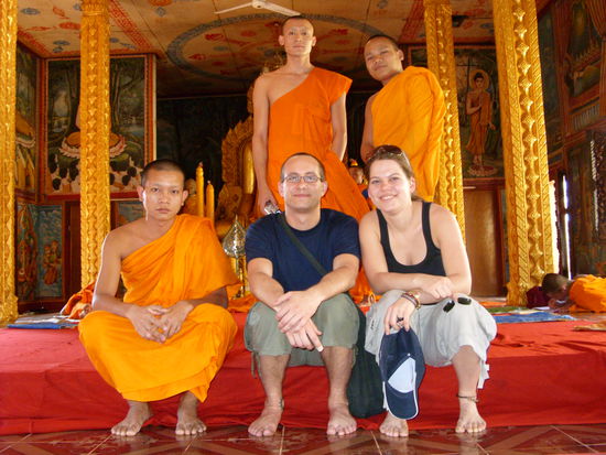 Der Flughafen in Pakse ist genau so winzig wie unsere Maschine und bei der VISA-Erteilung diskutieren 4 Zollbeamte wild über meine (Sven) letzten beiden Laos-Visa in meinem Pass. Fehlt mir da evtl. ein Ausreisestempel, oder bin ich verdächtig weil ich jetzt schon zum 3. Mal nach Laos einreisen will? Nach einem kurzen Telefonat erbarmt sich dann doch einer der Zöllner mir das ersehnte Visum in den Pass zu stempeln. Geschafft! Jetzt kann`s los gehen.