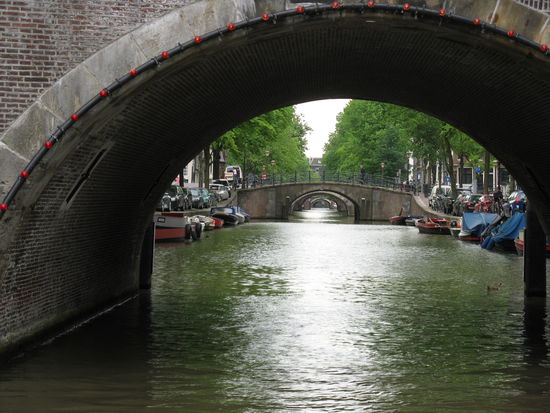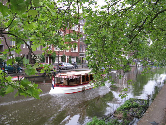 haben eine Gesamtlänge von ca. 80 Km.Der Austausch des Wassers erfolg durch Ebbe und Flut.Die Grachten dienten früher den Transport von Waren zwischen den Hafen und den Lagerhäusern.Zum Teil werden die Hacken an den Häusern auch heute noch genutzt.Unsere Fahrt hatte Ihren Anfang in der Singlegracht die gemeinsam mit der Oude Schanz die ältesten Grachten in Amsterdam sind.Im 16. Jahrhundert bildeten Sie die Stadtgrenze.Danach fuhren wir weiter über die Leidsegracht,Prinsengracht,Hafen,Herengracht,Amstel und Prinsengracht zurück zur Singlegracht.Im 17. Jahrhundert wuchst die Stadt stark an und es kammen die gerade erwähnte Prinsengracht,Keizersgracht