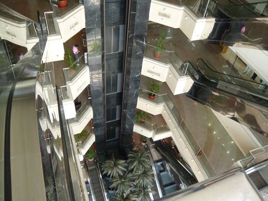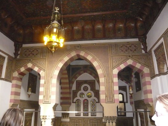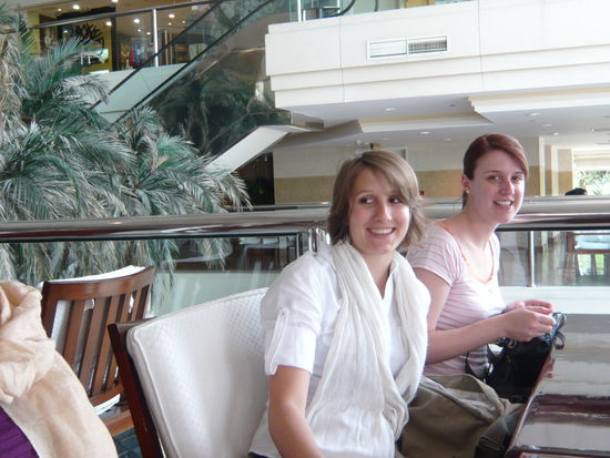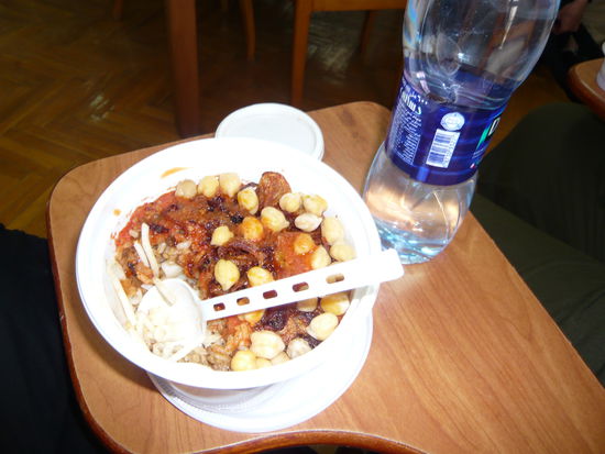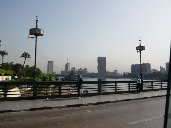 Der Nachmittag begann mit einem wundervollen Mittagessen im 15. Stock des Law Departments, wo wir auch unsere Kurse absolvieren werden. Geliefert wurde der Eintopf aus Reis, Teigwaren, Zwiebeln, Linsen und Kichererbsen an einer Tomaten-Vinaigrette-Sauce (arabisch: Koshir) von einer kleinen Taverne nebenan, die ihn in kleine Plastikschüsseln verpackt nach oben schickte. Später schlossen wir uns einer Studentin aus Kairo an, die Sally hiess und einen Kaffee trinken wollte. Wir trotteten ihr ahnungslos hinterher durch die staubigen Strassen, als wir plötzlich vor dem Hyatt Kairo standen. Völlig perplex betraten wir das luxuriöse Gebäude und schlürften wenig später umgeben von Zierpflanzen, Marmormosaiken und architektonisch bis ins Detail geplanten Wasserläufen unseren Kaffee. Hierbei stellten wir fest, dass bei den Ägyptern ein "Latte macchiato" und ein "Macchiato" bei weitem nicht dasselbe sind - der Unterschied besteht ungefähr in einem halben Liter Milch.