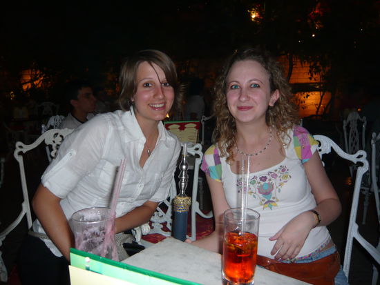 Kurz nach 10 Uhr machten Dimitria, Rafaela, Irene und ich uns auf den Weg ins Versailles - eine kleine Bar im Freien, wo wir die EM-Spiele live mitverfolgen konnten. Die Übertragungen waren wohl auch der Grund dafür, dass wir Eintritt bezahlen mussten (25 EGP); im Gegenzug erhielten wir aber alle einen Cocktail gratis (natürlich ohne Alkohol, dafür mit Shisha).