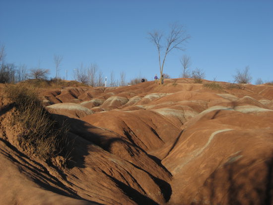 Nachdem wir nach knapp 14 km endlich wieder bei Auto sind und das ganze incl. einer 30 minütigen Pause in 3 Stunden bewerkstelligt haben, fahren wir noch nach Folks of the Credit, einem kleinen Ort in der Nähe von Mississauga und geniessen nach den Anstrengungen einen Kaffee in der Sonne. Anschliessend halten wir noch in Cheltenham Badlands.