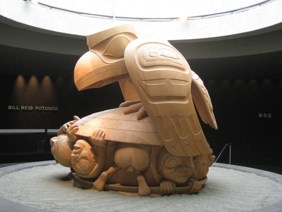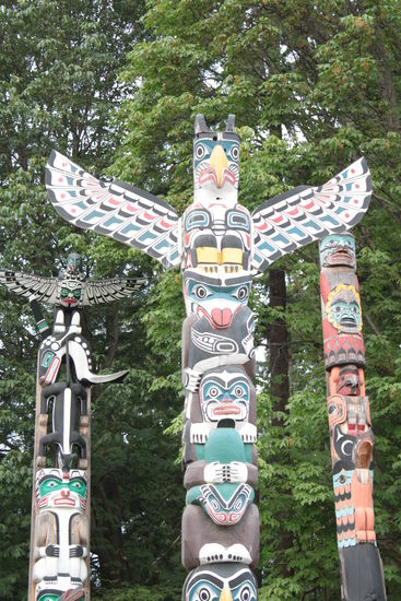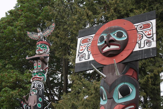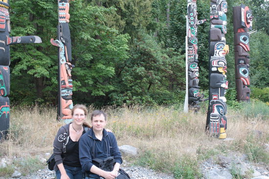 Leider spielt das Wetter heute nicht mit und so entschliessen wir uns, vormittags ins Museum of Anthropology zu fahren. Wir verbringen eine Ewigkeit vor Bill Reids Skulptur "The Raven and the First Men", photographieren begeistert die Totempfähle (Markus) und merken gar nicht, wie schnell die Zeit verfliegt. Den Nachmittag verbringen wir auf Granville Island, versorgen uns mit diversen Köstlichkeiten und picknicken anschliessend am Sunset Beach. Laufen zum Inukshuk, bis zum Stanley Park und zurück nach Downtown und fahren erschöpft mit der Linie 16 zum B&B.
