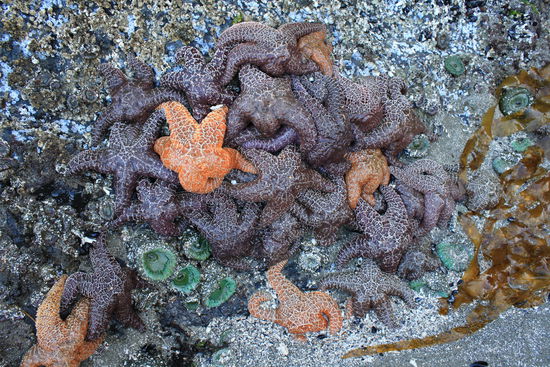 Endlich sehe ich einen Seestern....und kann es kaum glauben, dass wir später eine Stelle entdecken, wo sie zu Hunderten aufeinander hängen... ganz schön glibberig
