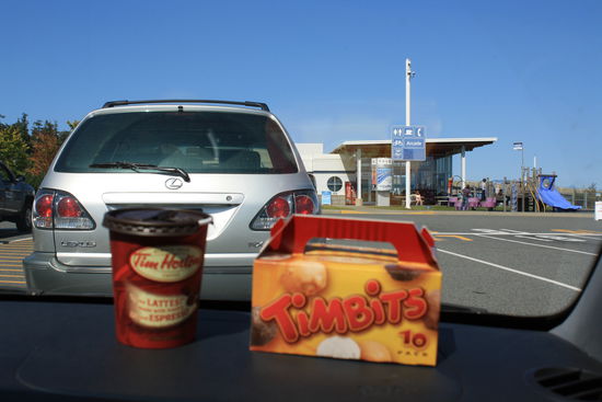 Wie versorgen uns noch bei Tim Hortons mit Timbits und reihen uns dann in die lange Autoreihe ein. Dieses Mal sind wir pünktlich und werden die Fähre zurück nach Vancouver planmässig erreichen... schön war's.