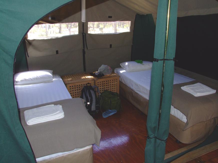 Als wir im Camp ankamen, um unsere Sachen dort zu lassen und das Camp zu erkunden (da wir später evtl. im Dunkeln zurückkommen würden) wußte ich, dass ich dir richtige Entscheidung getroffen hatte: Was für ein gemütliches Zelt, guckt mal! Und ganz für mich allein - da wir 13 Leute in der Gruppe waren, war niemand da, mit dem ich das Zelt teilen konnte Und nicht nur das Zelt war klasse, auch die Umgebung. Nah beim Strand und schöne hohe Bäume überall.