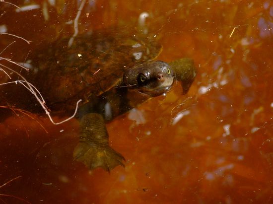 Guckt mal, hier kann man sehen wie braun das Wasser ist: