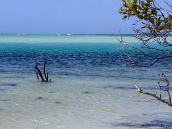 Die Farben hier waren einfach fantastisch! Das Wasser reichte von dunkelblau über türkis bis glasklar. Der Sand war schneeweiß und dann auch mal wieder bräunlich-rot und es gab auch Mangroven, ohne Blätter und mit grünen Blättern. Einfach ein Paradies zum Fotos machen. Einige aus unserer Gruppe gingen auch ins Wasser, aber dafür war mir die Strömung ehrlich gesagt schon zu stark. Die Flut kam nämlich gerade und man konnte förmlich zusehen, wie der Pegel anstieg.