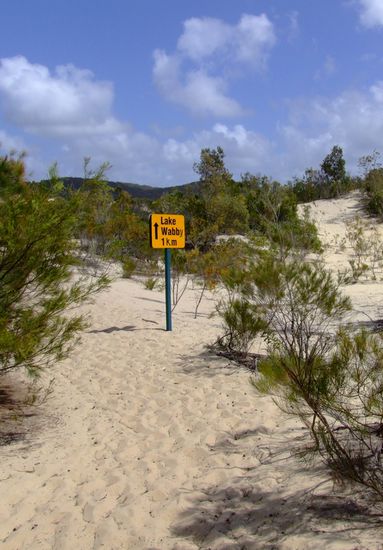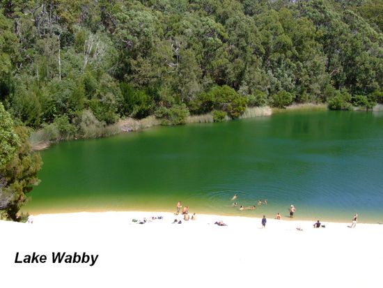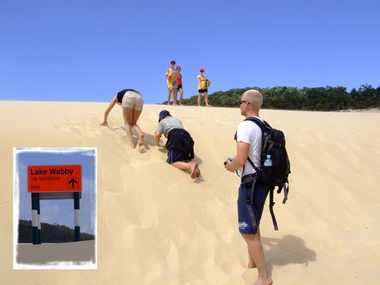 Was dann folgte war leider nicht so lustig - der Weg zum LAKE WABBY... Erst 1 km durch tiefen Sand und dann nochmal 1 km über eine Sanddüne, erst hinauf und dann hinunter zum See. Ganz schön anstrengend!