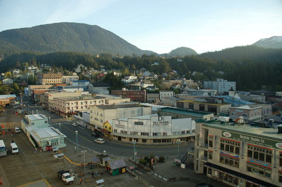 Ketchikan ist in Alaska bekannt als "the first City" und liegt auf der südwestlichen Seite der Revillagigedo Insel. Wir befinden uns also nicht auf dem Festland! Rund 14 000 Einwohner bevölkern das Städtchen. 1883 wurde hier die erste Lachsfabrik gebaut, wo man den Fisch in Konservendosen verarbeitete. Nicht umsonst wurde Ketchikan auch die Lachshauptstadt der Welt genannt. Weiter verarbeitete man aber auch Holz, so dass grosse Sägewerke entstanden.