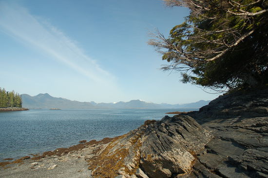 Nach dem Essen spazieren wir auf das Sundeck, holen uns wieder zwei Stühle und machen es uns erneut unter dem schrägen Glasdach, das als Abschrankung dient, bequem. Zusammen mit schöner Musik aus dem iPod geniessen wir die Nachmittagsfahrt durch die Clarence Strait. Das Wetter könnte es nicht besser meinen und die wenigen lang gezogenen Schleierwolken sind höchst fotogen. Über drei Stunden sitzen wir hier oder spazieren herum und beobachten die schönen Schneegipfel linker- und rechterhand. Immer mehr Leute kapern auch Stühle und setzen sich aufs grosse Sundeck.